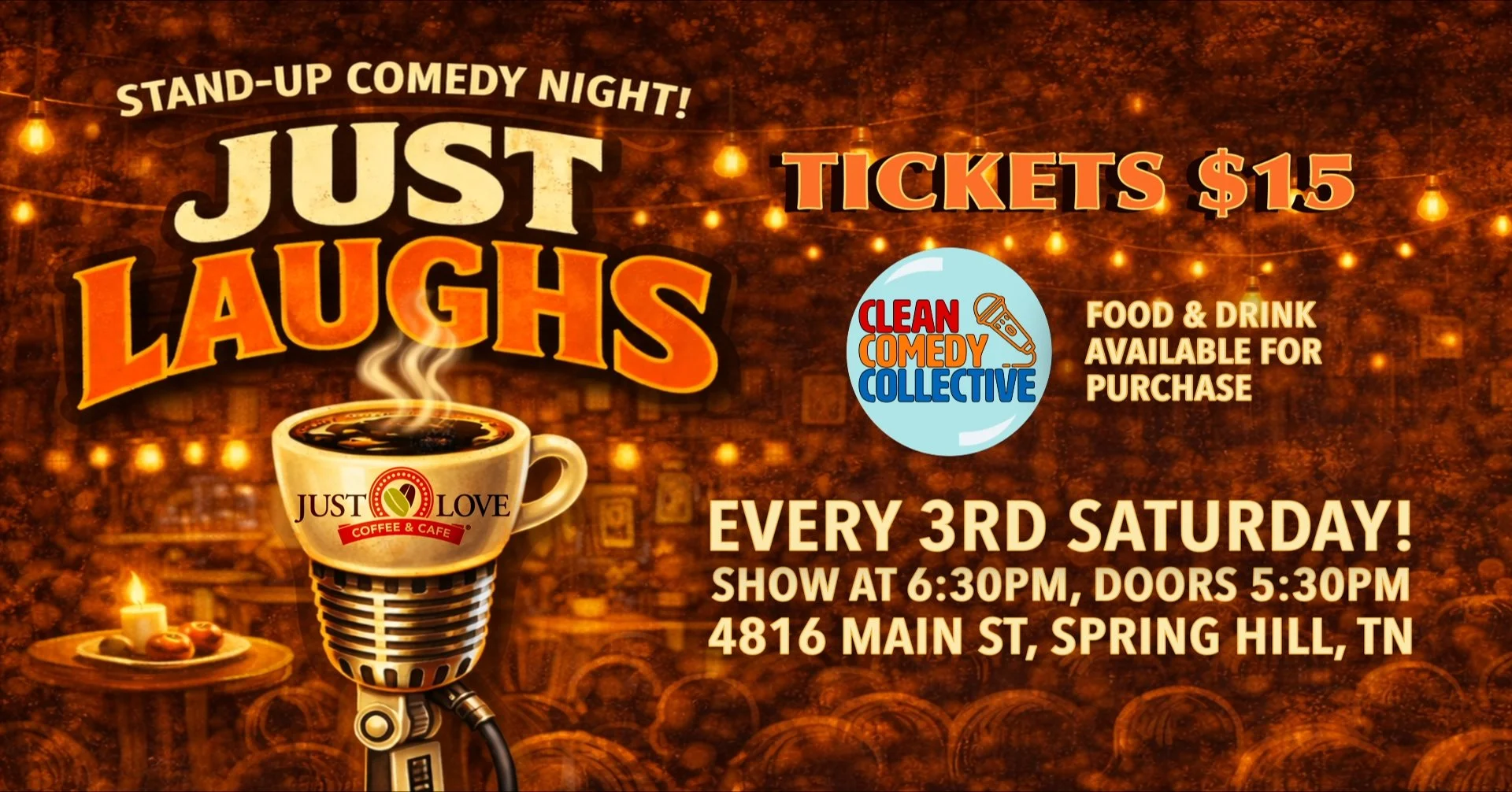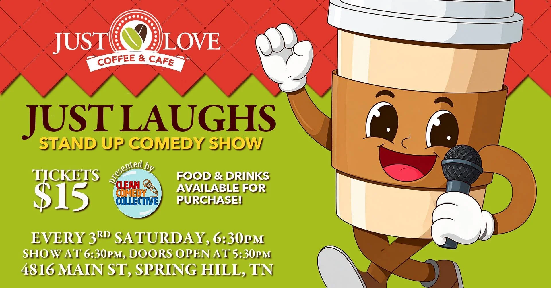 Come on down to your favorite local coffee spot, Just Love Coffee Cafe, for some family friendly funnies. We can’t wait to see you there!