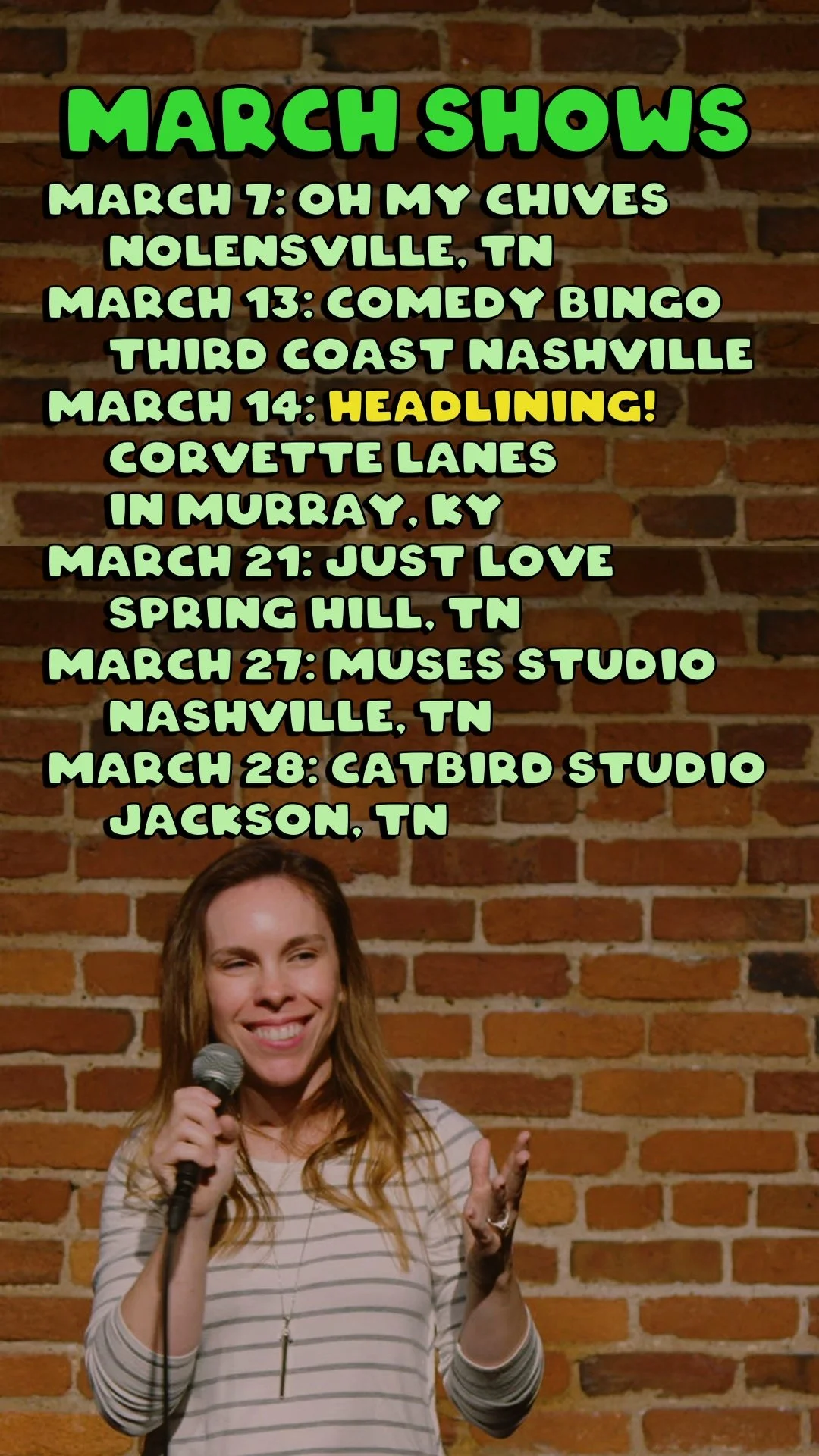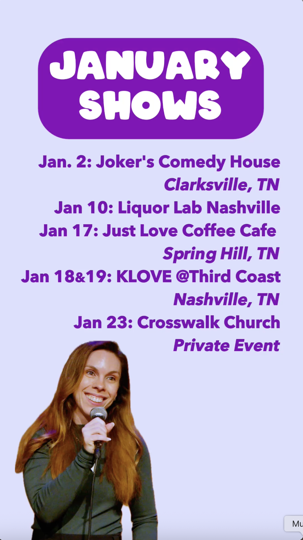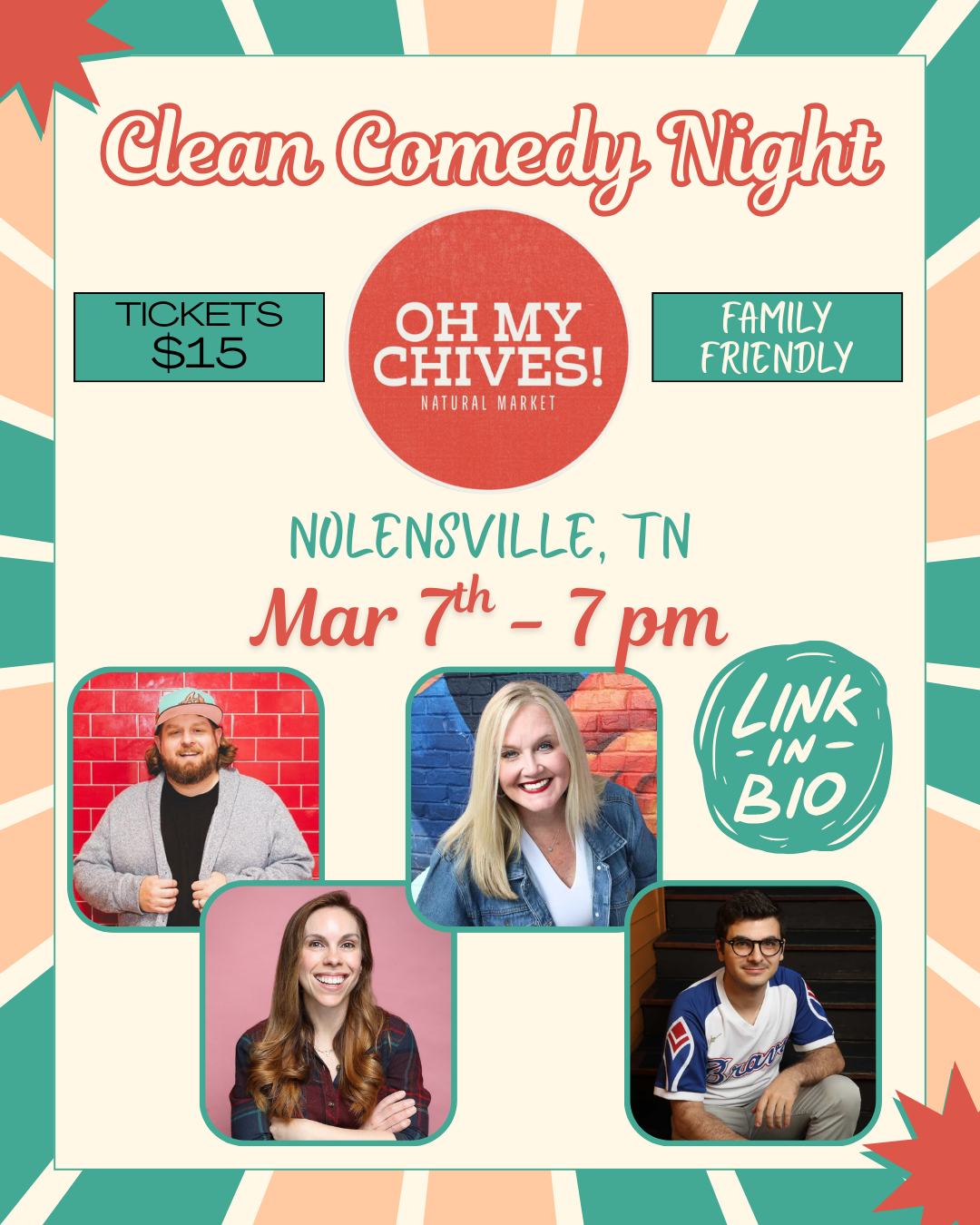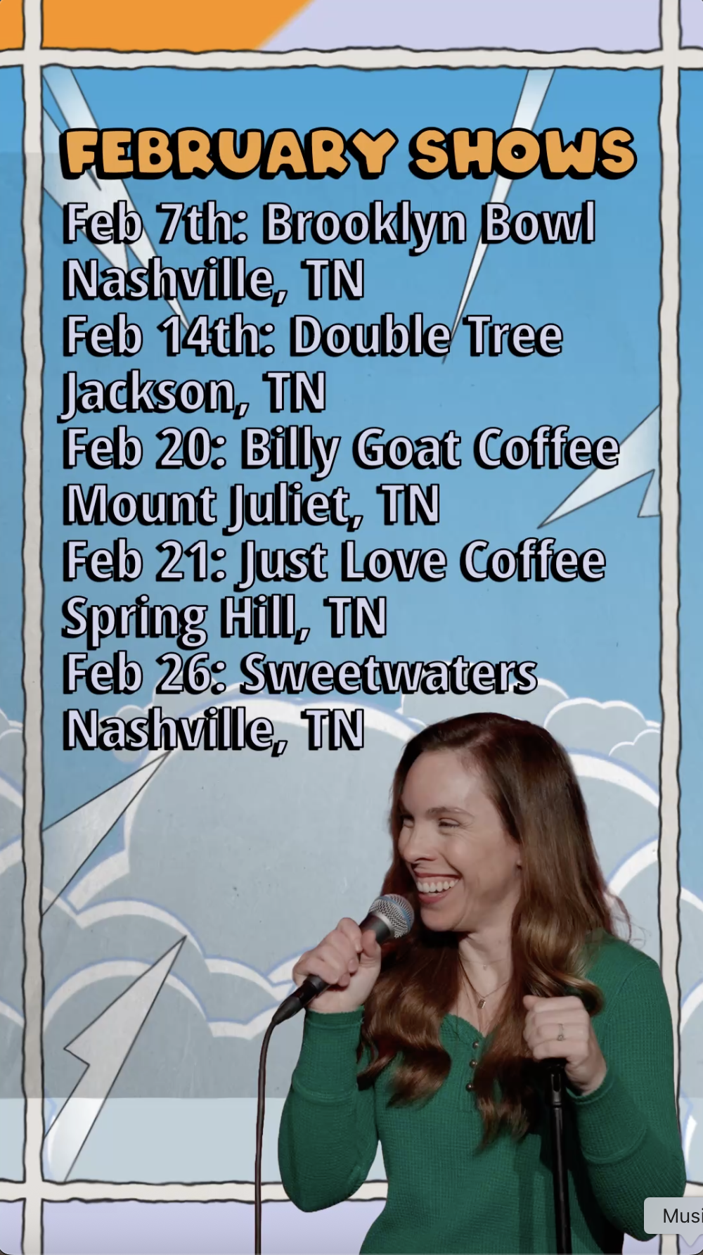 I host a hilarious clean comedy show that happens every third Saturday of the month! We bring in some of the best local and touring comics around, and you will absolutely love it!